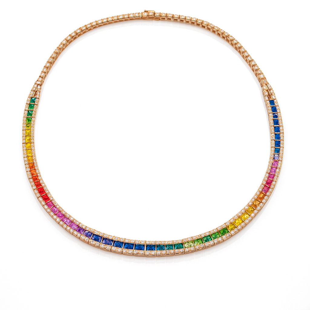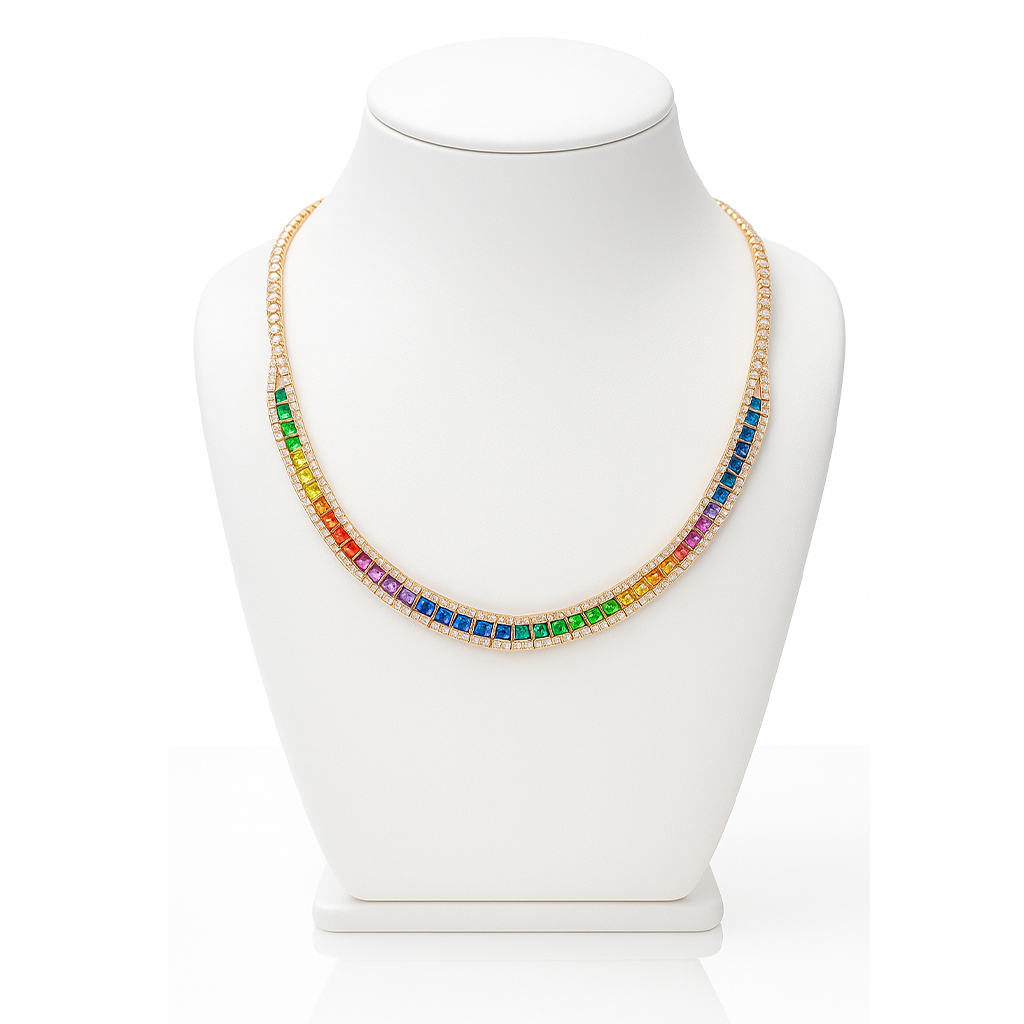 2.5mm Princes cut Rainbow sapphire stones necklace / 10.22cts
